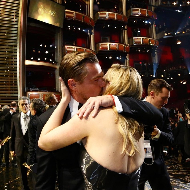 Кейт Уинслет поздравляет Леонардо ДиКаприо с победой на "Оскаре":