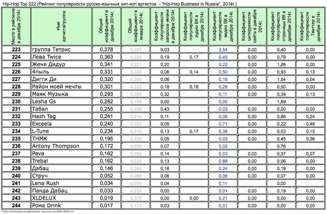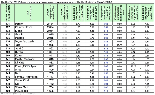 а первый квартал 2014г, аналитика руинг Hip-Hop d/p 222 за первый квартал 2014г, аналитика руинг Hip-Hop Top 222 за первый квартал 2014г, аналитика русского рэпа.